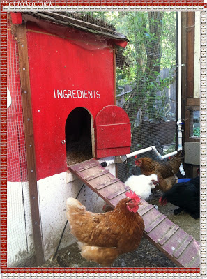 I love that the coop says “Ingredients” above the chicken entrance!